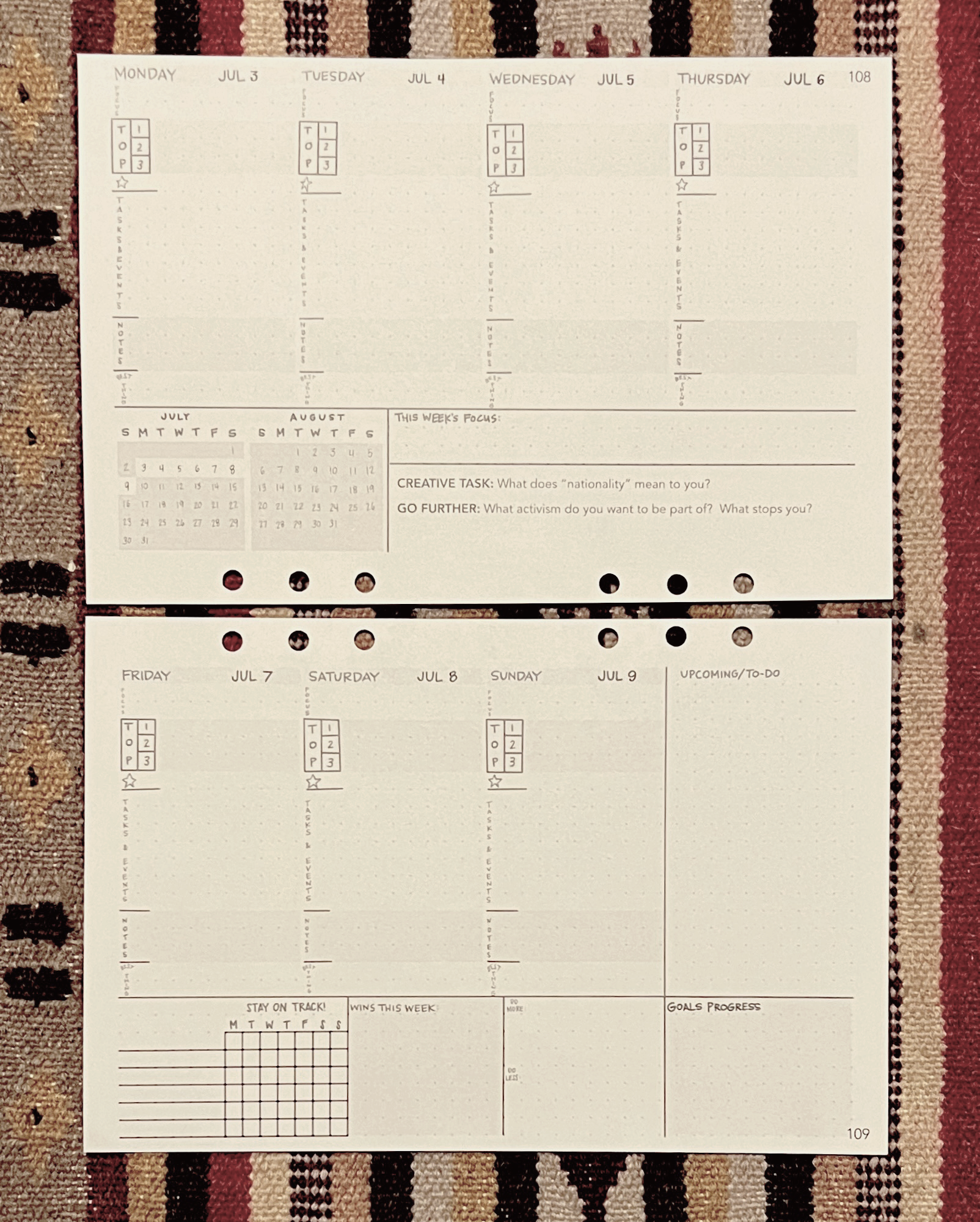 The dates will be random, but I'll send you a 2-sheet sampler from W+P (6-hole pages pictured here because the wire-bound planner was still at the printer when we launched this option!), and you can see for yourself if W+P is a fit for you before committing to buy the whole enchilada.