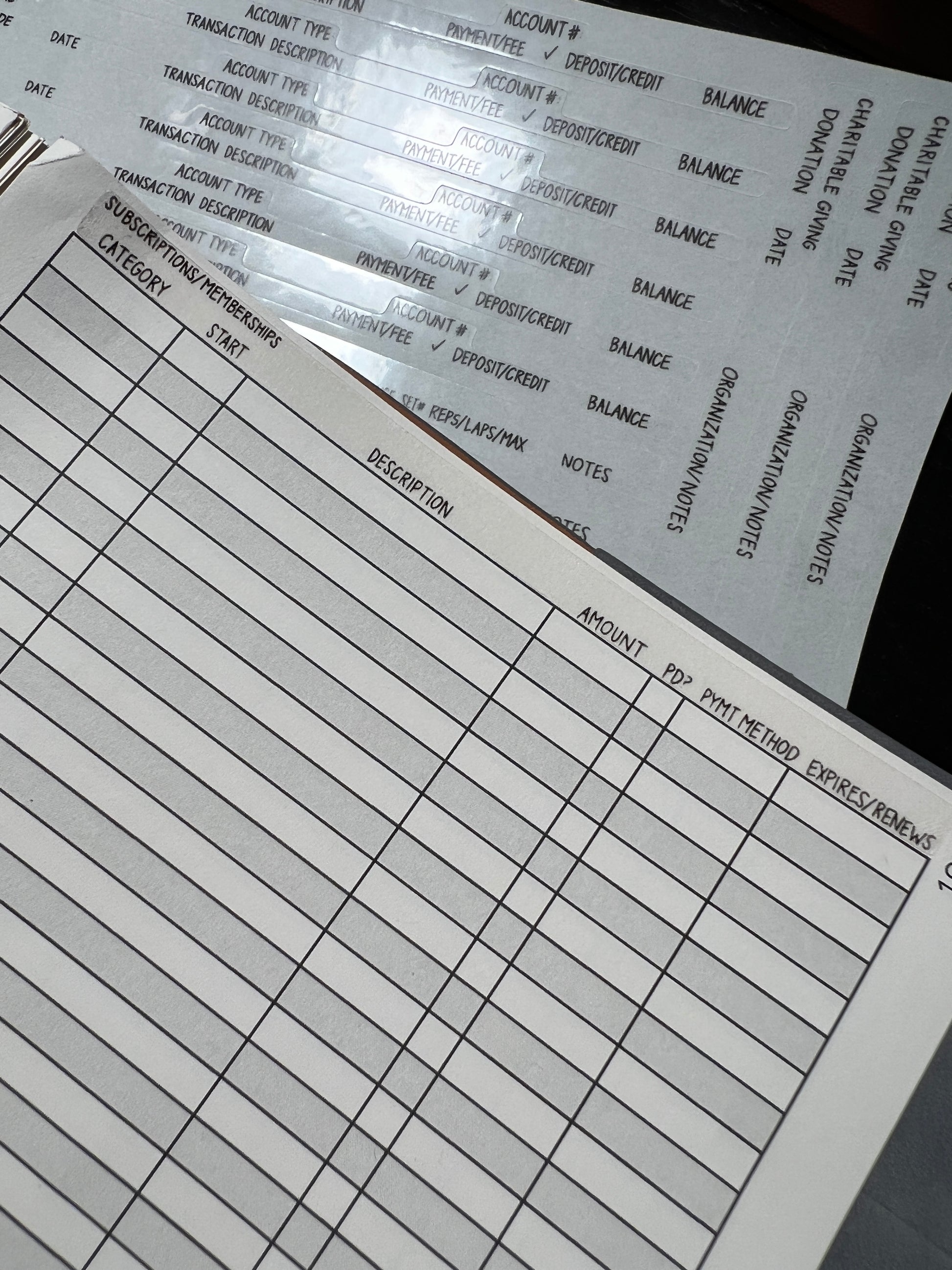 For those final pages in the Work Play Every Day 6x9" planner - these are clear labels with headings so you can make the best use of those charts to log your: