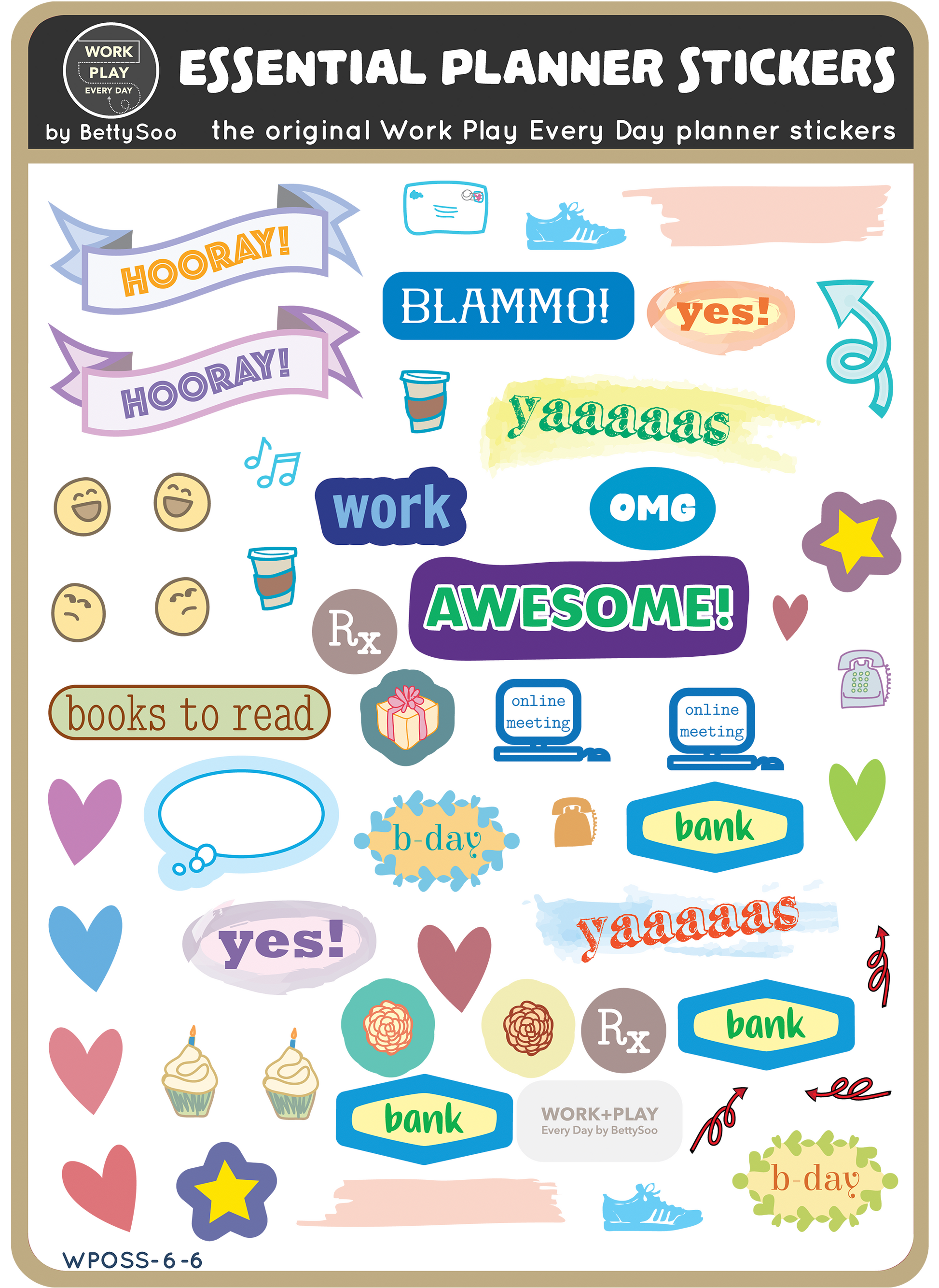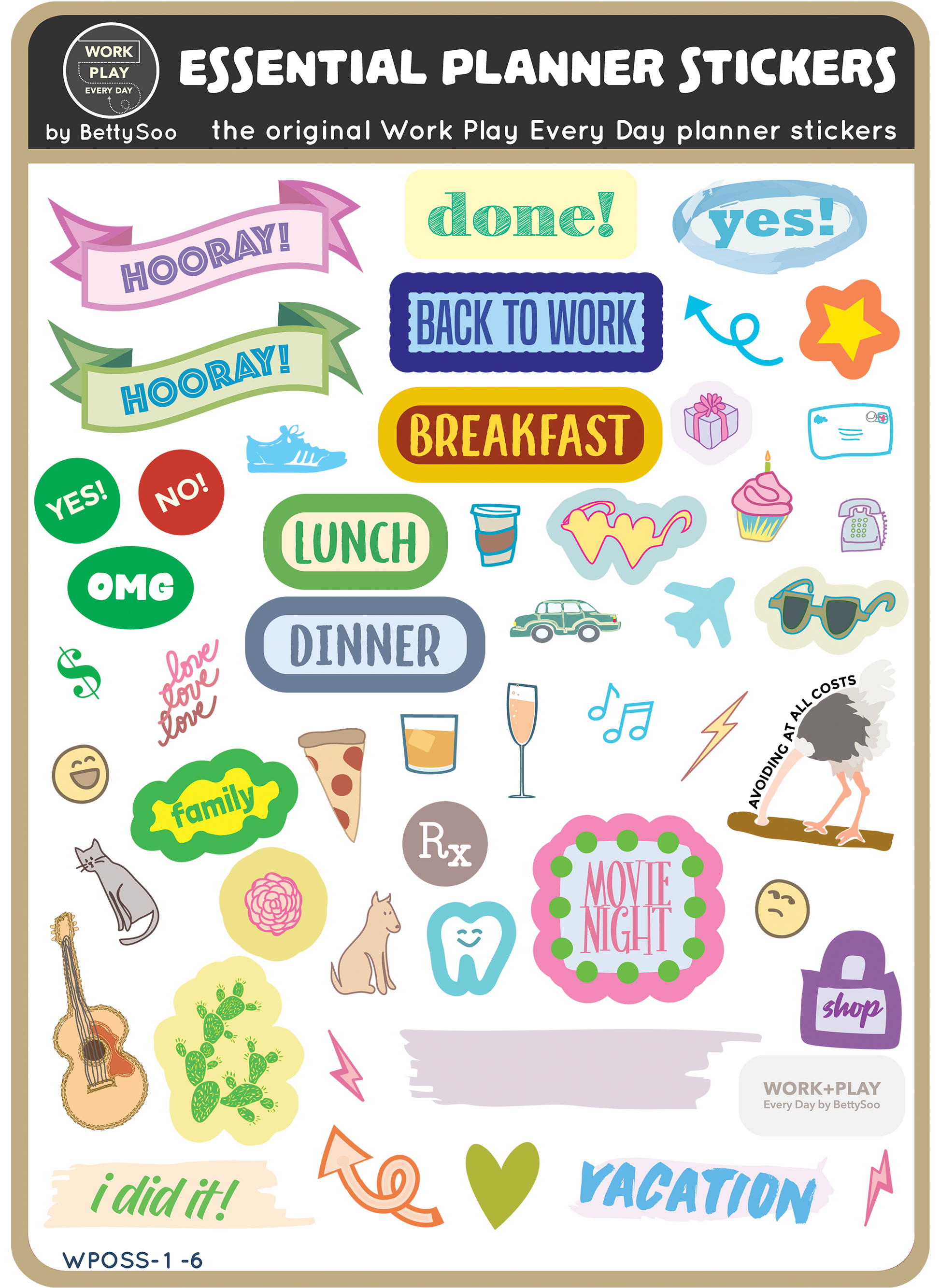 6 cute, functional sheets of stickers designed by BettySoo to use in your WORK PLAY EVERY DAY Planner (or any planner)! This pack has over 280 stickers. Event markers, list headers, special day icons, and so much more.
