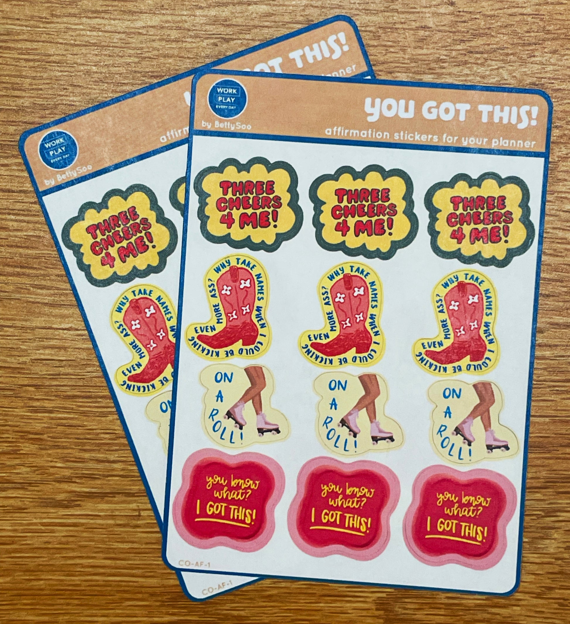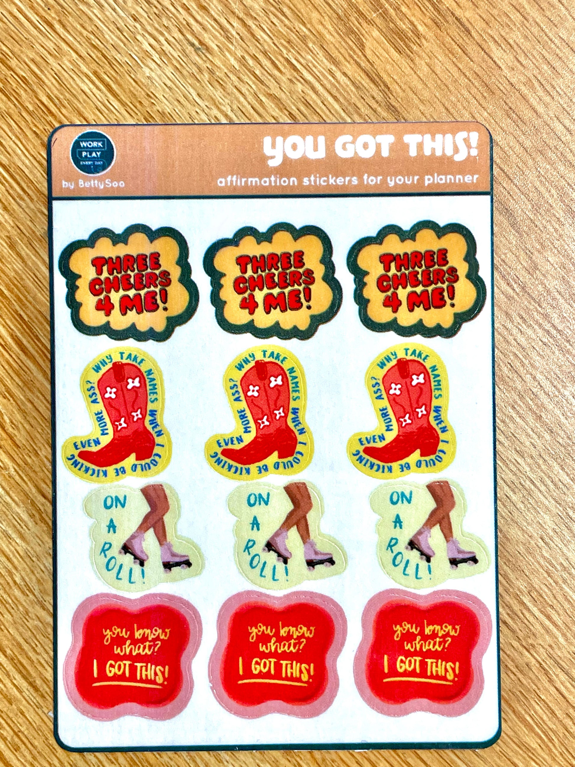 Cute, colorful affirmation stickers for your planner - or anywhere — these stickers are here to cheer you or someone you love onward towards the next big goal - or just to get through the day.